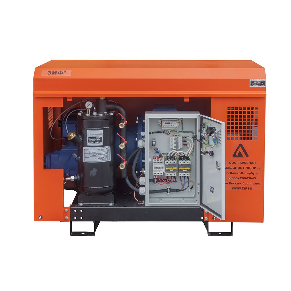 Электрические станции ЗИФ-СВЭ без кожуха могут быть полезны, когда размещение компрессора в производственном помещении по различным причинам невозможно или неудобно.