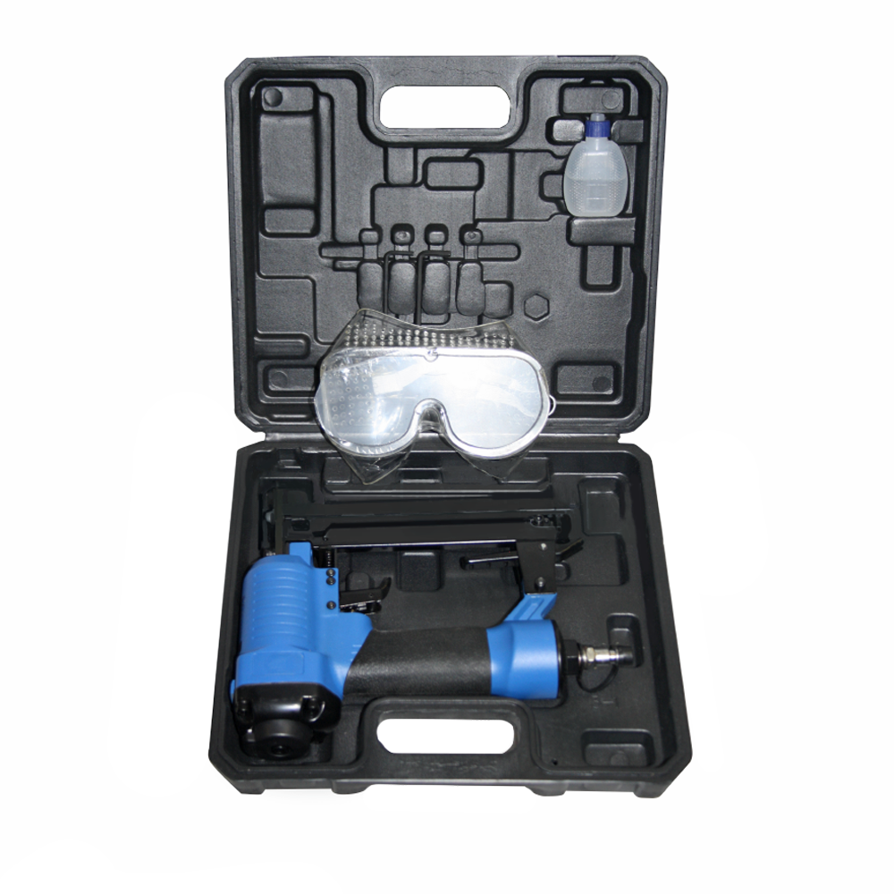 Инструмент упакован в пластиковый кейс. В комплекте идут защитные очки, шестигранные ключи для обслуживания инструмента и масленка с пневматическим маслом для закапывания в штуцер.