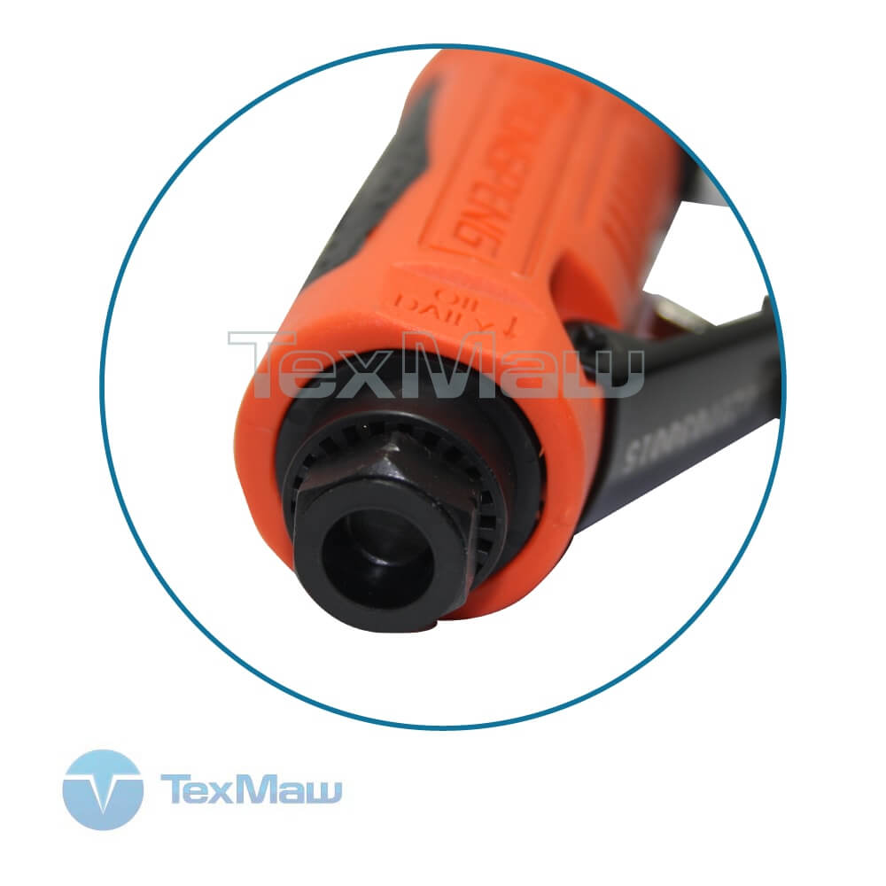 Пневмошлифмашинка К-4006 А предназначен для выполнения монтажных работ с использованием крепежных элементов на резьбе. Имеет удобную для использования конструкцию: на прорезиненной ручке расположен рычаг, посредством которого инструмент приводится в действие. Шпиндель расположен перпендикулярно ручке шуруповерта. Квадрат шпинделя составляет 6,4 мм (1/4 дюйма).